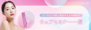 bnr_seminar_romapink_web 2025 / 04 / 24 目次 - シェア 関連記事 年末年始休暇のお知らせ 【レモンボトル導入検討中のお客様向け】ウェブセミナー 一覧 《サロン運営に役立つ》プロによる集客セミナー 【導入ご検討中の方向け】その他のマシン説明会&補助金セミナー 日程一覧 各専門教授によるWEBセミナー 一覧 【会員様向け】脱毛基礎知識講座(中級) ウェビナー参加ページ