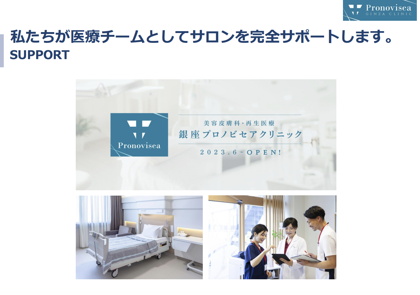 医療提携をサービスをご契約のサロン様は、弊社が医療チームとしてサロン運営をサポートしていきます。ディプロマの発行・地域毎に3サロン限定契約・オンライン診療可能。