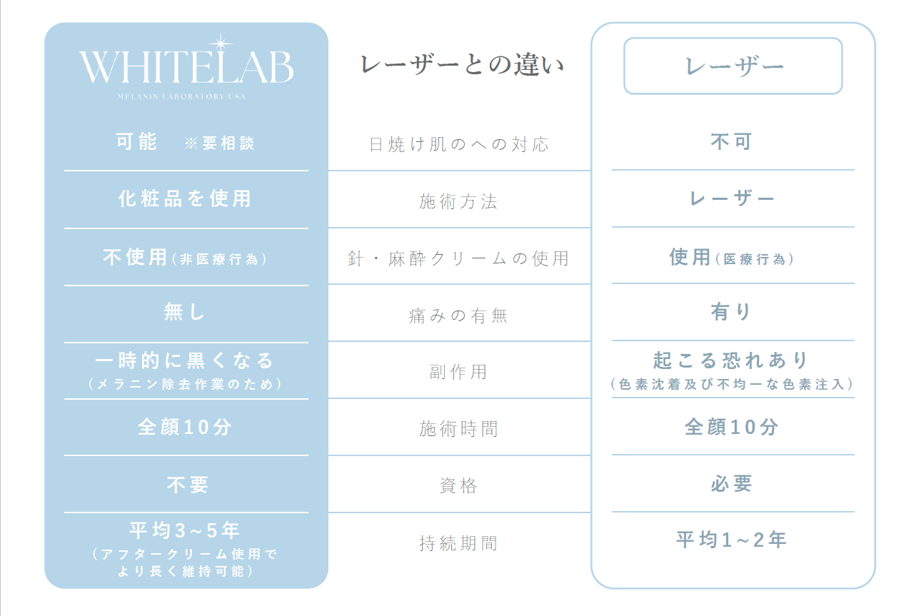 *表皮のシミに特化している施術です。真皮のシミ施術は医療行為のためホワイトラボでは施術不可。